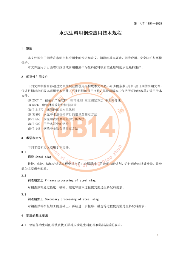 水泥生料用钢渣应用技术规程