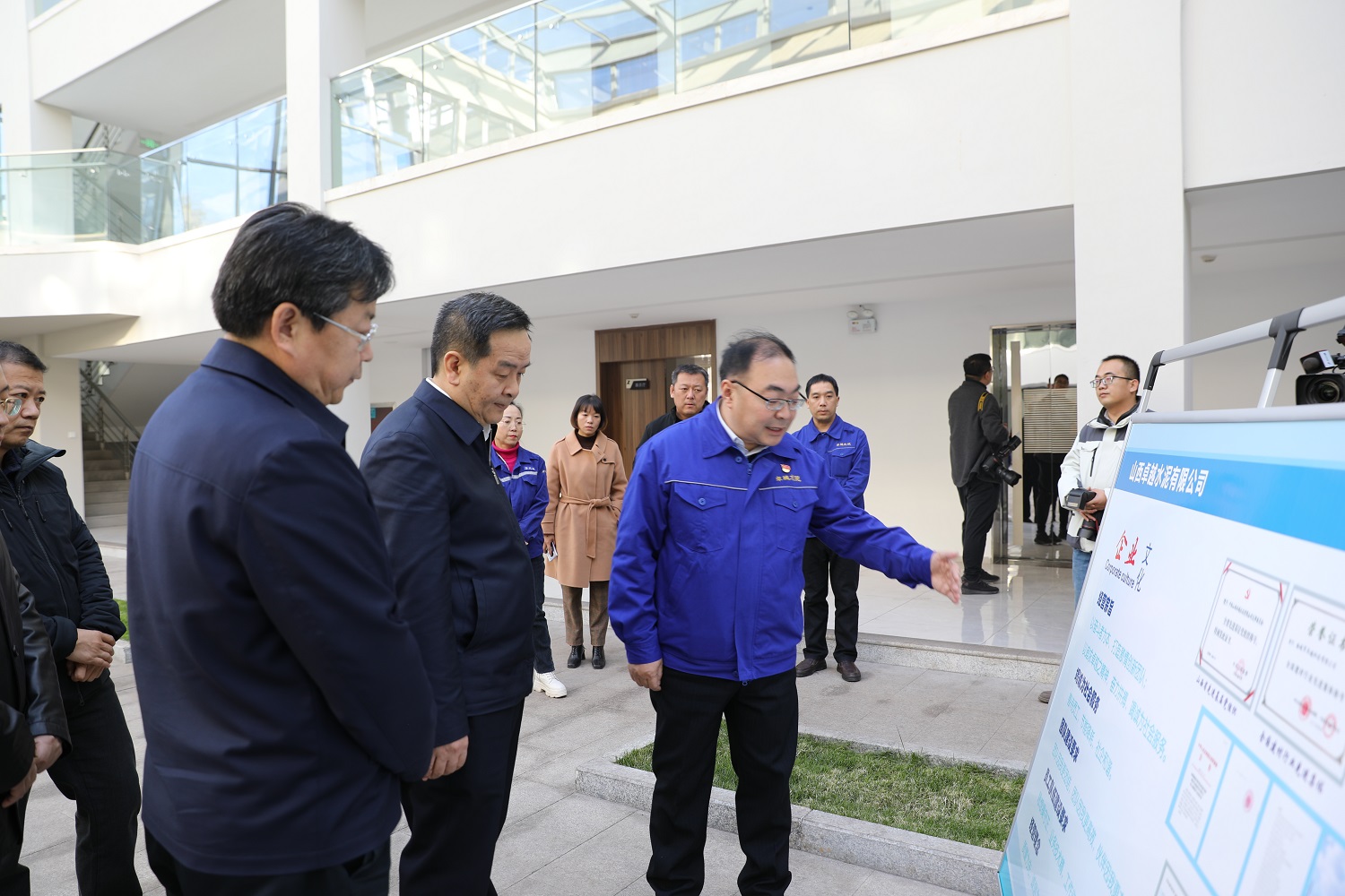 2021年11月12日,长治市委副书记、代市长陈耳东,市政府秘书长桑利刚,市发改委党组书记、主任许保中,市工信局常务副书记郭伟,及潞城区委书记秦苏良、副书记柴哲、常务副区长李明一行深入公司,就工业固废利用、技术创新、人才引进及企业文化建设等工作进行调研,并兴致勃勃地参观了绿色建材研究中心实验室和软实力中心办公大楼。陈耳东对公司在工业固废方面做出的成绩给予充分的鼓励和肯定。